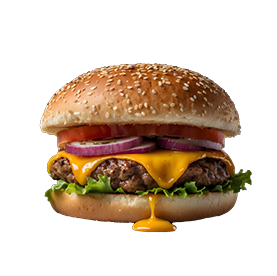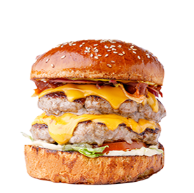 2 Steaks de boeuf smashés, cheddar, oignons rouges, sauces au choix.