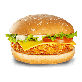 Poulet pané, cheddar, salade, tomates, oignons rouges, sauces choix.