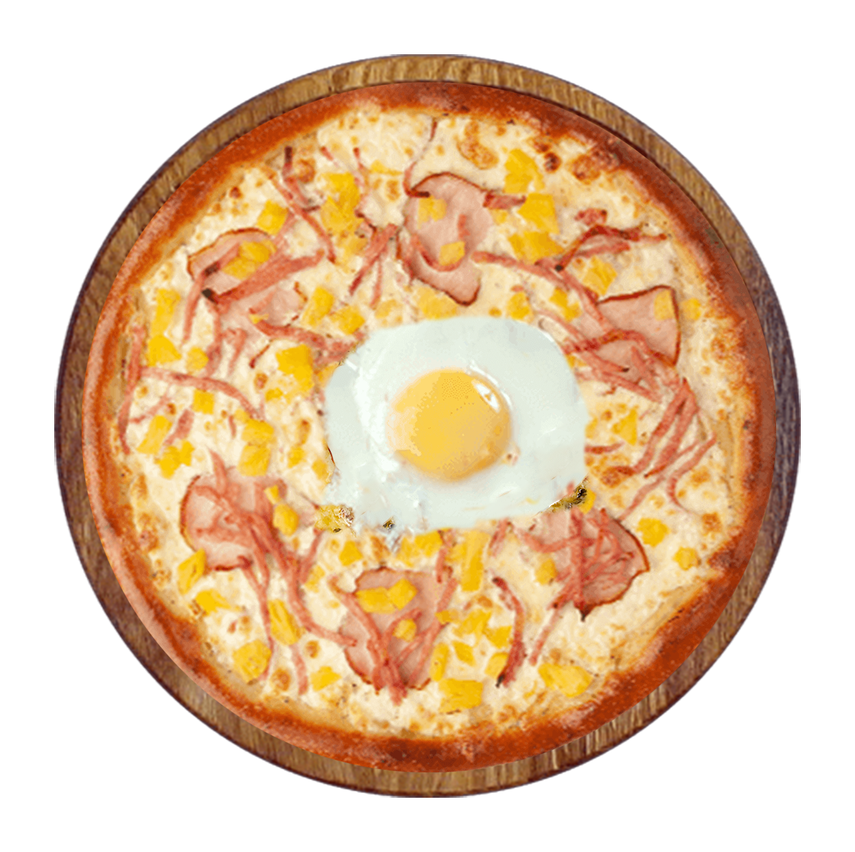 Crème de petit pois bio, jambon de dinde, mozzarella, lardons fumés, oeuf, huile d'olive.