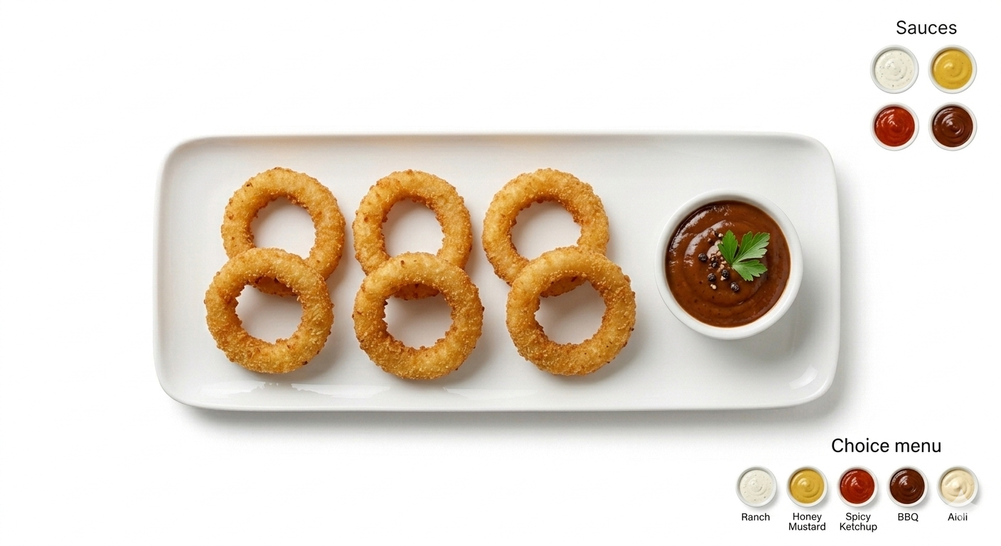 6 rondelles d'oignons frites au four, sauce au choix