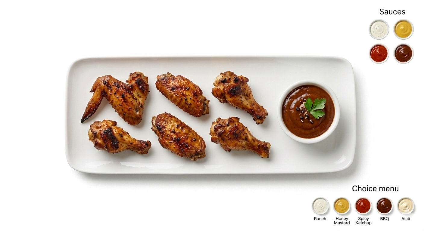 6 ailes de poulet marinées et grillées au four, sauce au choix